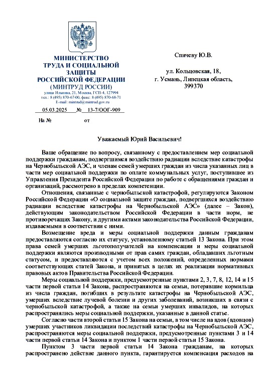 О предоставлении мер соц.поддержки по оплате ЖКУ членам семей умерших граждан... О распространении на участников ЛПК на ЧАЭС с инвалидностью, связанной с чернобыльской катастрофой, норм ФЗ «О ветеранах».