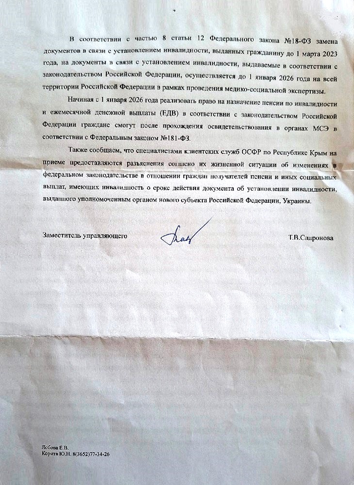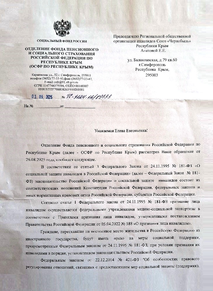 В Крыму установлена единовременная выплата пострадавшим в Чернобыльской аварии...........