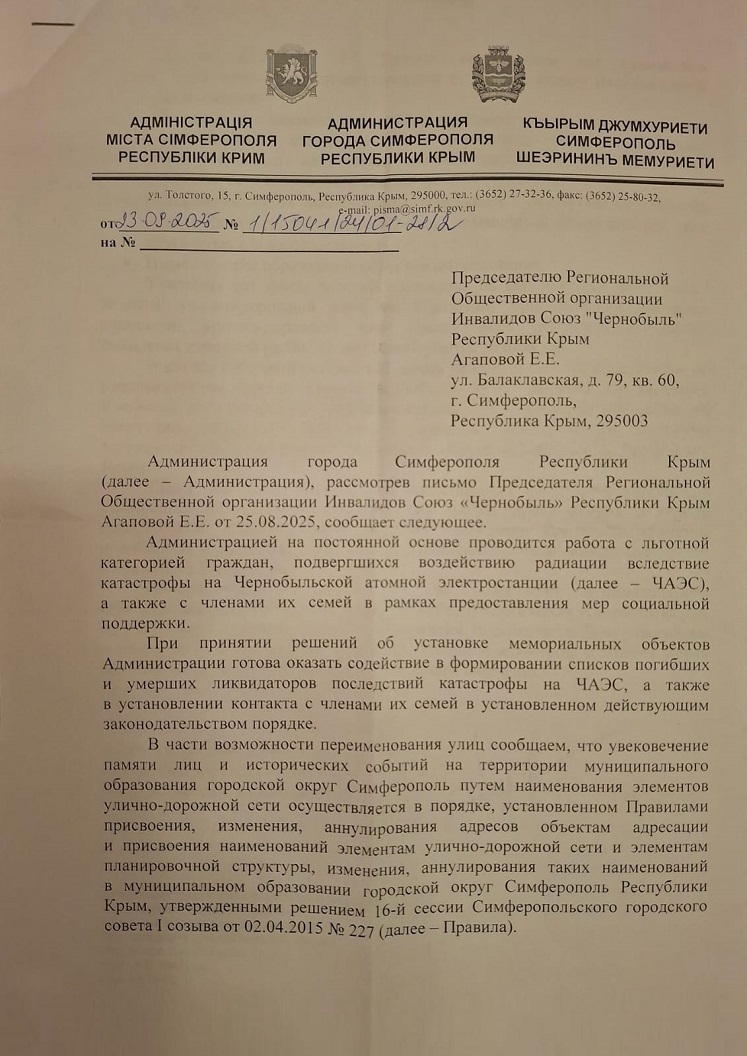 В Крыму установлена единовременная выплата пострадавшим в Чернобыльской аварии...........