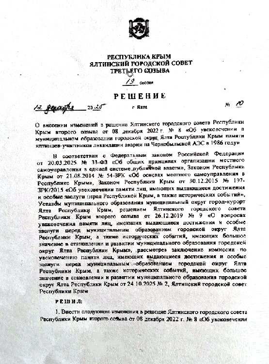 В Крыму установлена единовременная выплата пострадавшим в Чернобыльской аварии...........
