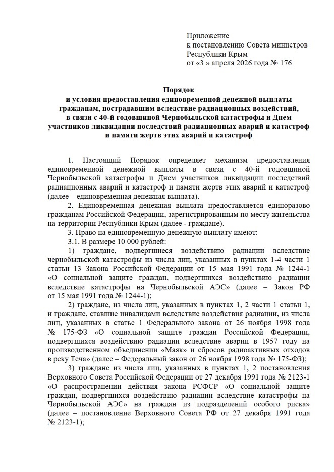 В Крыму установлена единовременная выплата пострадавшим в Чернобыльской аварии...........